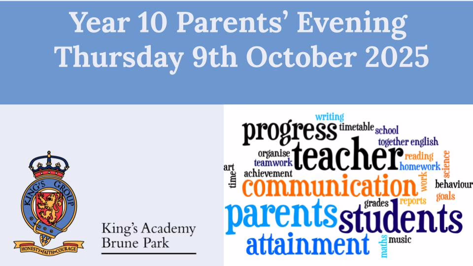 Year 10 Parents' Evening will be taking place on Thursday 9th October between 4:00pm - 7:00pm.